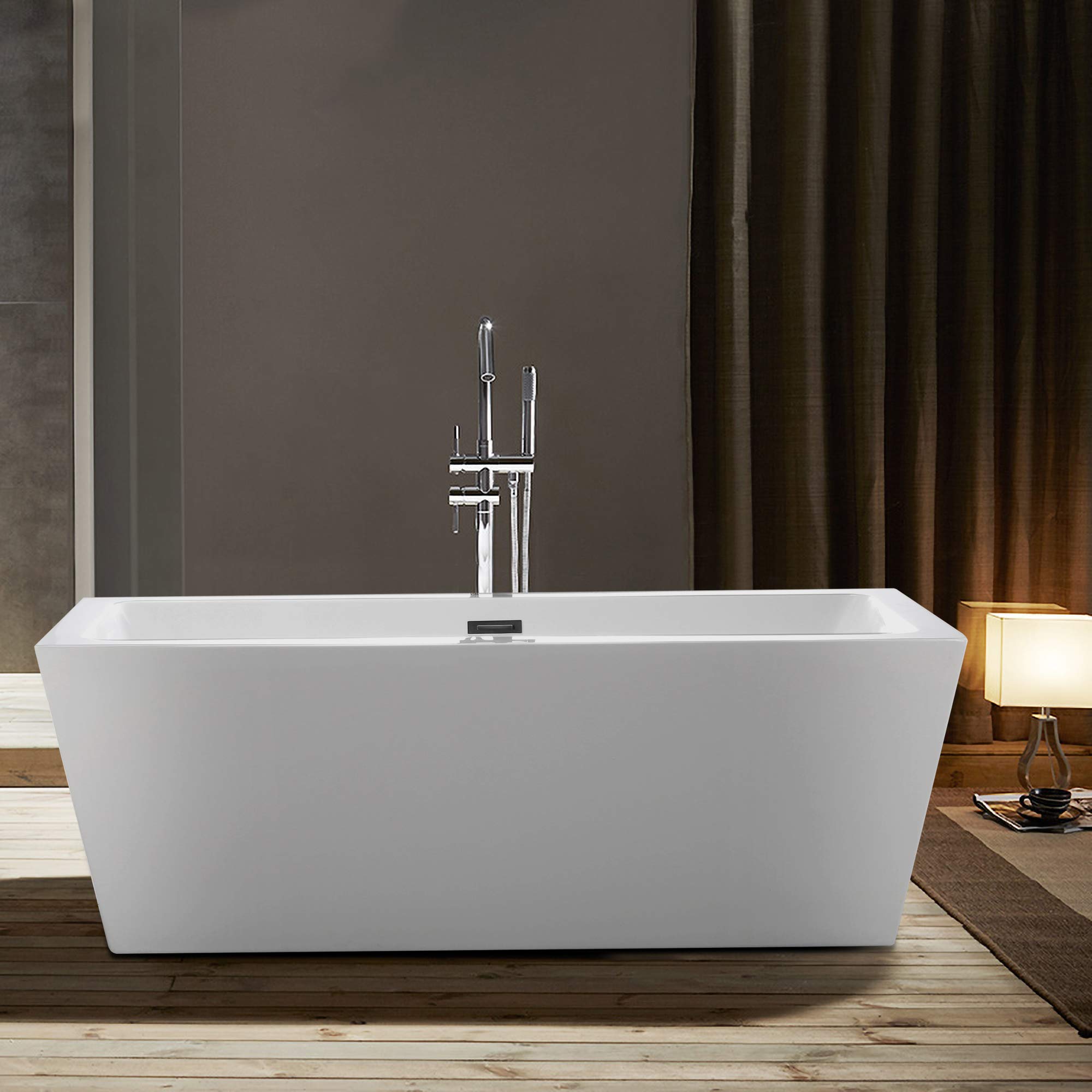 American Standard Cadet 5 5 Ft Acrylic Flatbottom Freestanding Bathtub In Artic White With Polished Chrome Drain And Filler 2764014m202 011 The Home Depot