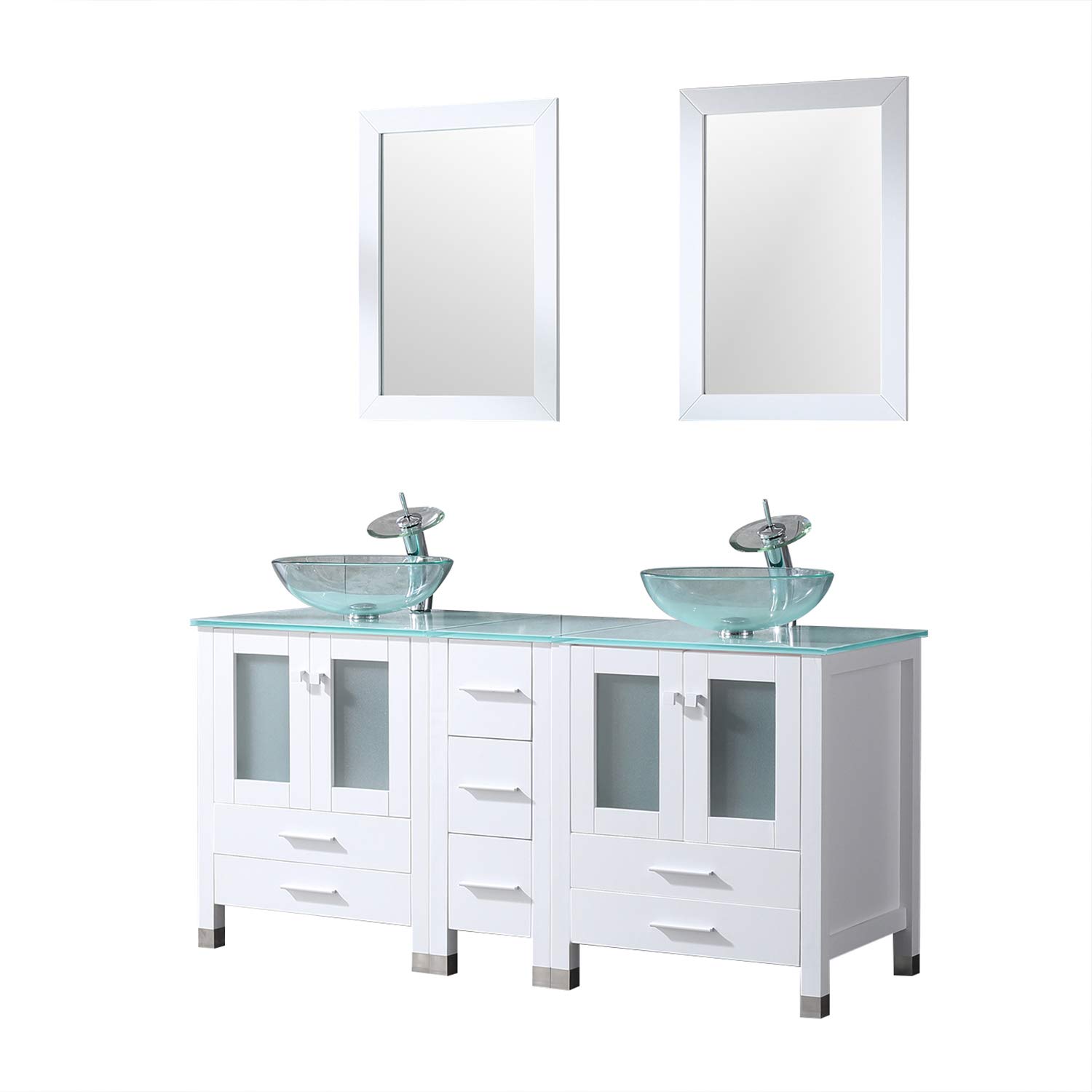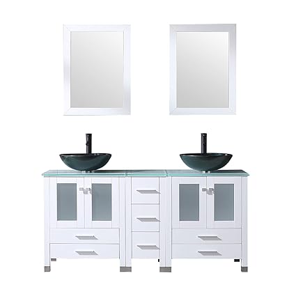Sliverylake White 60inch Bathroom Vanity Top Double Vessel Sink Vanities 1036 Amazon In Home Kitchen