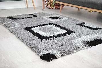 Buy Global Home Extra Large Grey Black Ivory Cube Boxed Pattern Geometric Square Design Mix Super Soft High Deep Pile Luxury Shaggy Area Rug For Living Room Rug Carpet Size 6 Ft