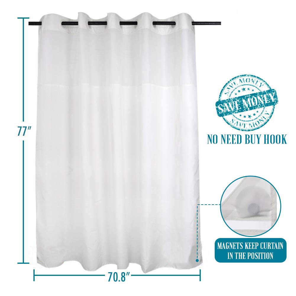 Yqn Hookless Shower Curtain With Removed Fabric Inner Liner Magnet 70 8 X 74 Inch Polyester Thickening Bath Curtain With Light Filtering Mesh Screen Anti Mildew Abs Flex On Rings White Amazon In Home Kitchen