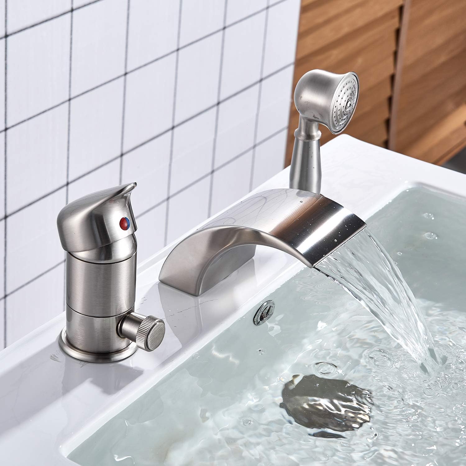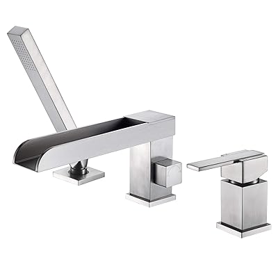 Senlesen Brushed Nickel Single Handle 3 Hole Waterfall Roman Tub Filler Faucet With Hand Shower Amazon Com