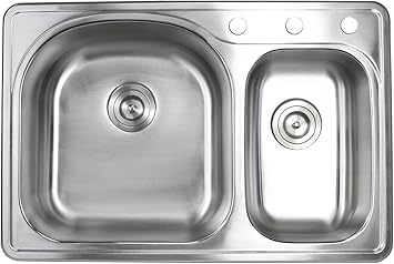 33 Inch Top Mount Drop In Stainless Steel 70 30 Double Bowl Kitchen Sink 18 Gauge 3 Faucet Hole Amazon Com