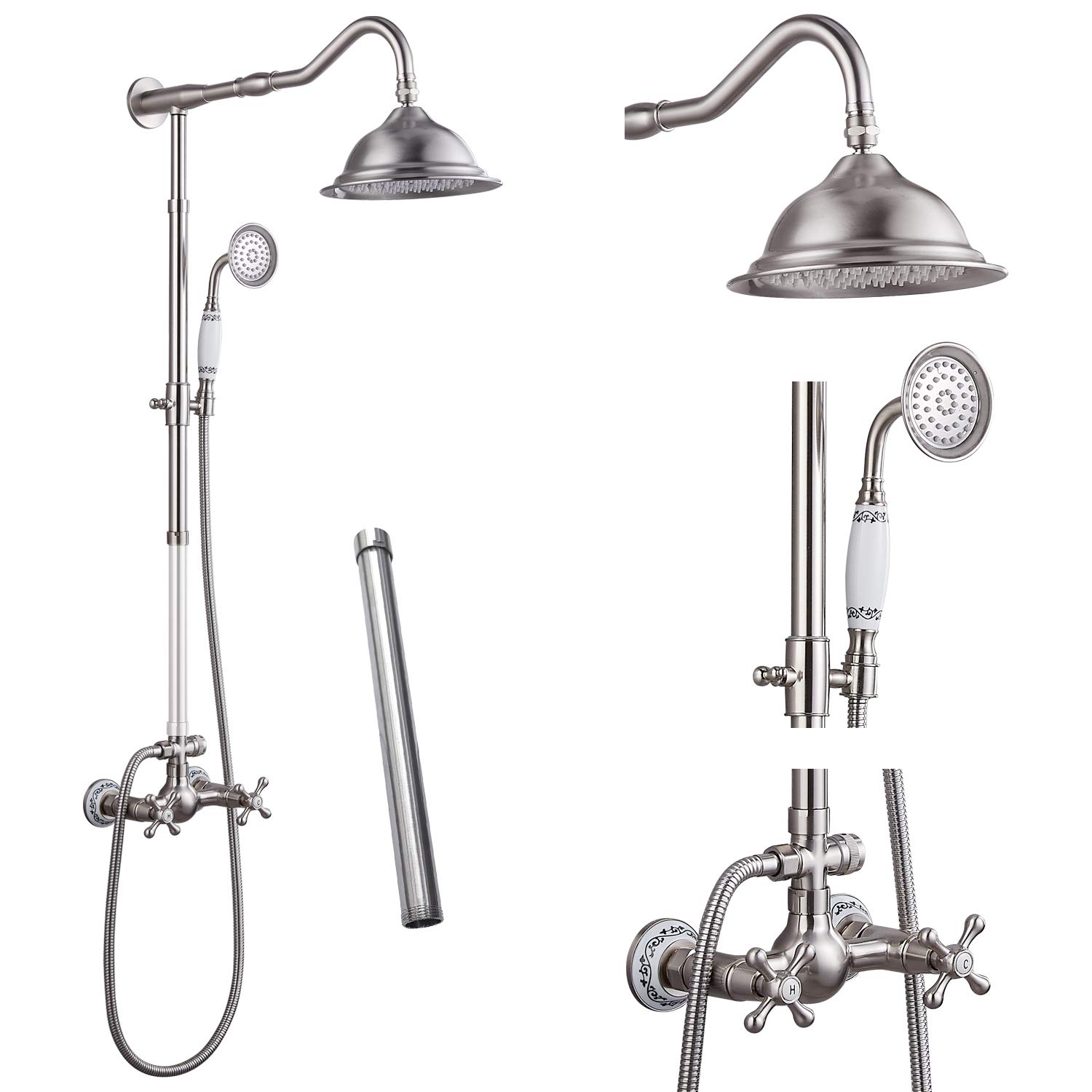 Aolemi Shower Faucet Set Brushed Nickel With 12 Inch Extension Tube 8 Inch Rain Shower Head System Handheld Shower Fixture Wall Mount Double Cross Handle Amazon In Home Improvement